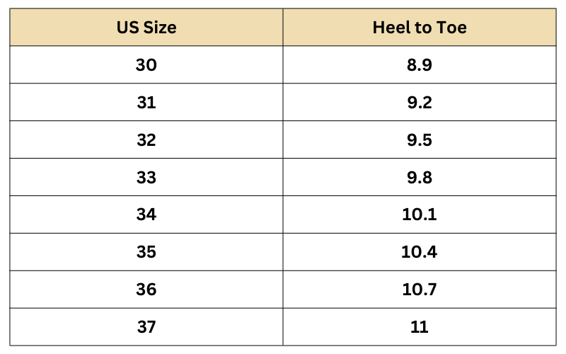 Size Chart (Inches):