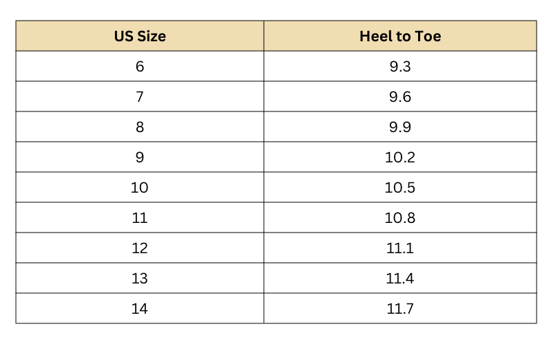 - Refer to the Size Chart – Compare your foot measurement with the sizing guide.
