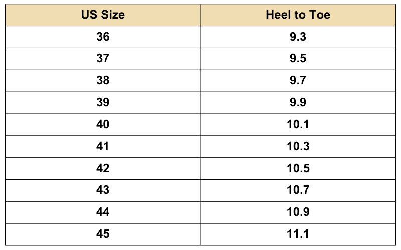 Size Chart (Inches):