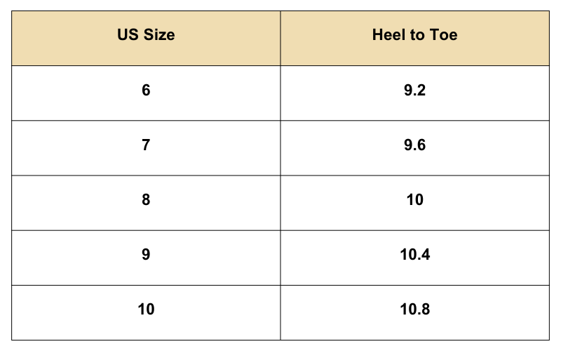Size Chart (Inches):